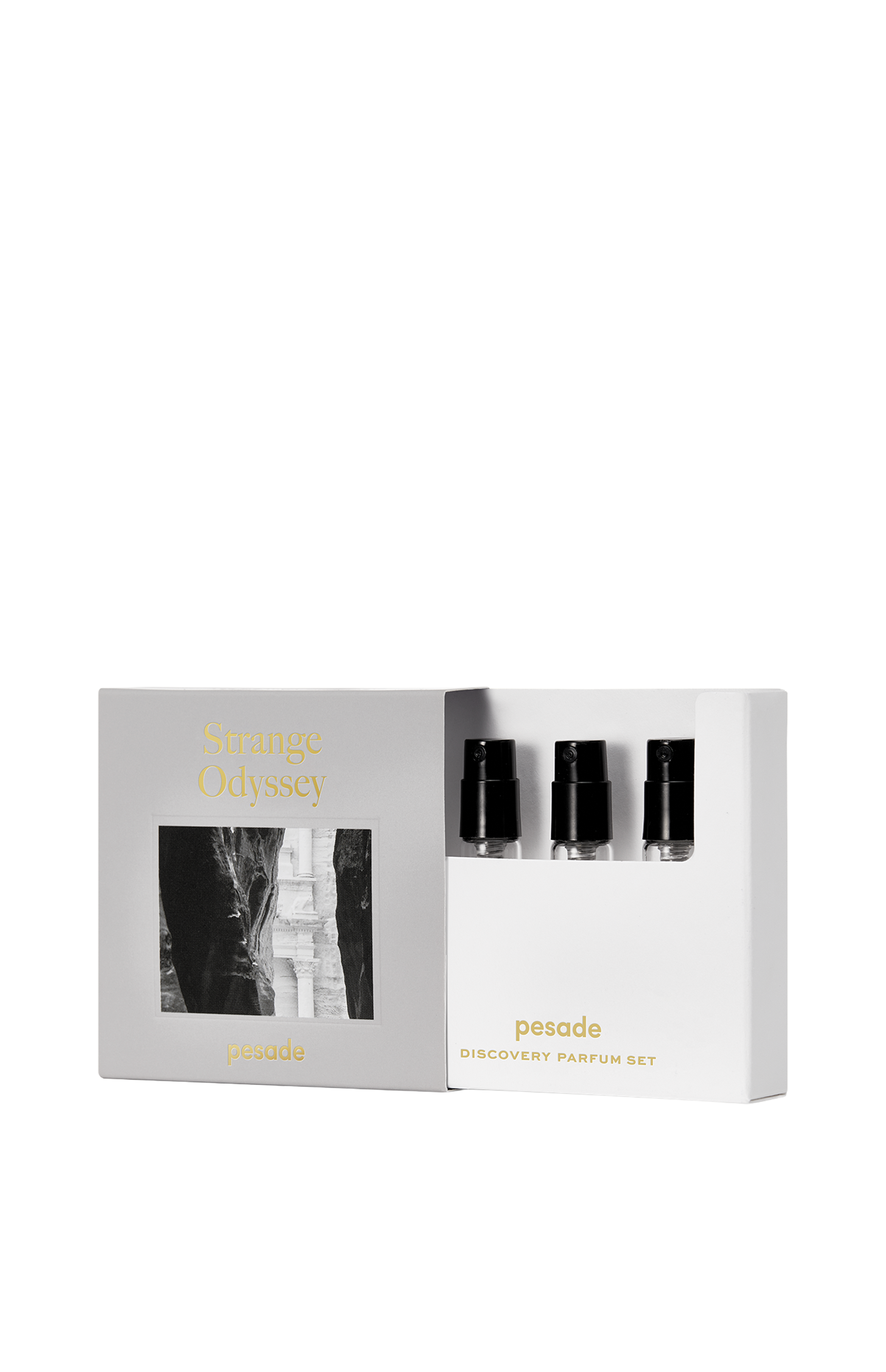 pesadeチャプター2の香りを体験できるディスカバリーセット。3種類のフレグランス(各3ml入り)で、1本につき約30プッシュお使いいただけます。あなたのための新しい香りを探してみてください。